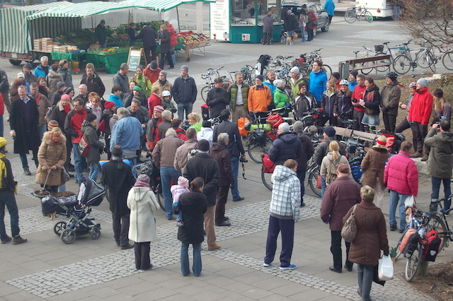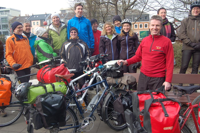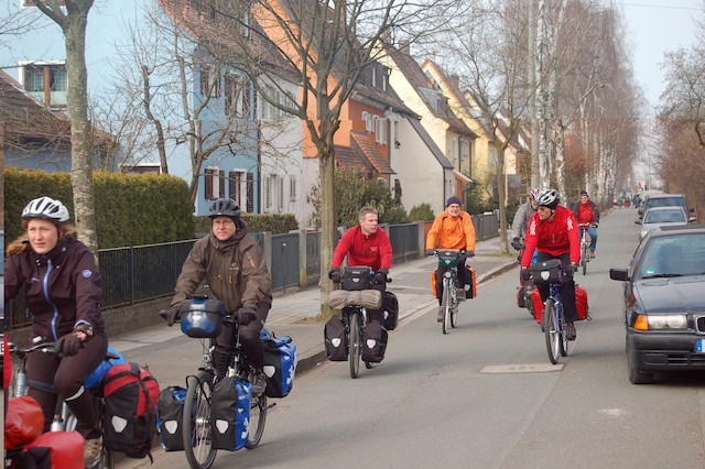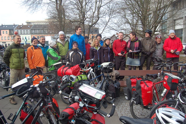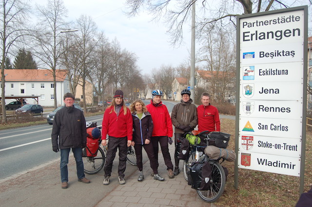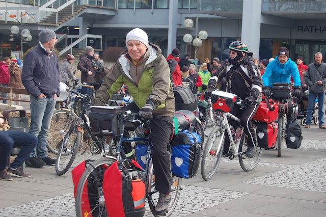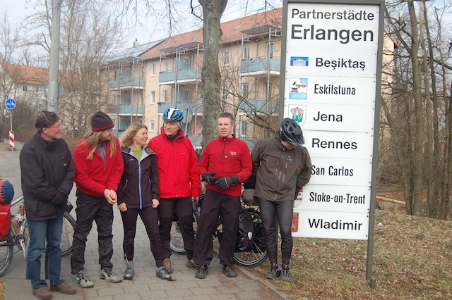Gegen 10 Uhr startet eine Gruppe von 20 Radlern. Die meisten Fahrer begleiten Peter Smolka über die Osterfeiertage bis nach Zittau. Gertrud Härer, Walter Költsch und Jörg Gruner radeln über St. Petersburg mit bis zur Erlanger Partnerstadt Wladimir östlich von Moskau (3600 km).